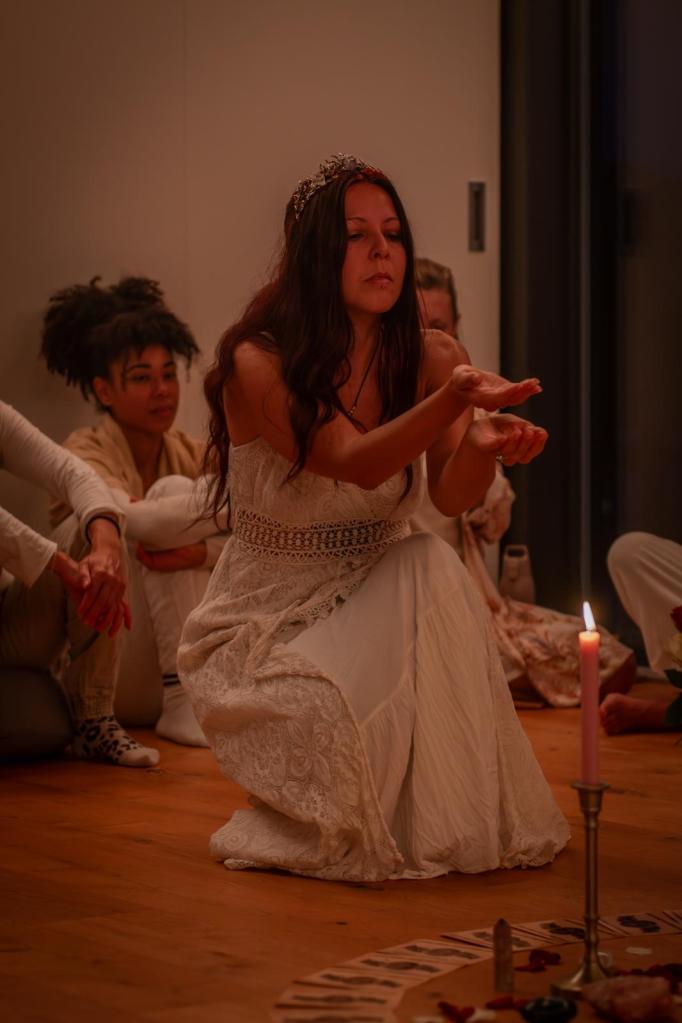 La « choré Prêtresses », une danse rituélique en cercle, est une chorégraphie qui m’est venue en canalisation à l’automne 2023.