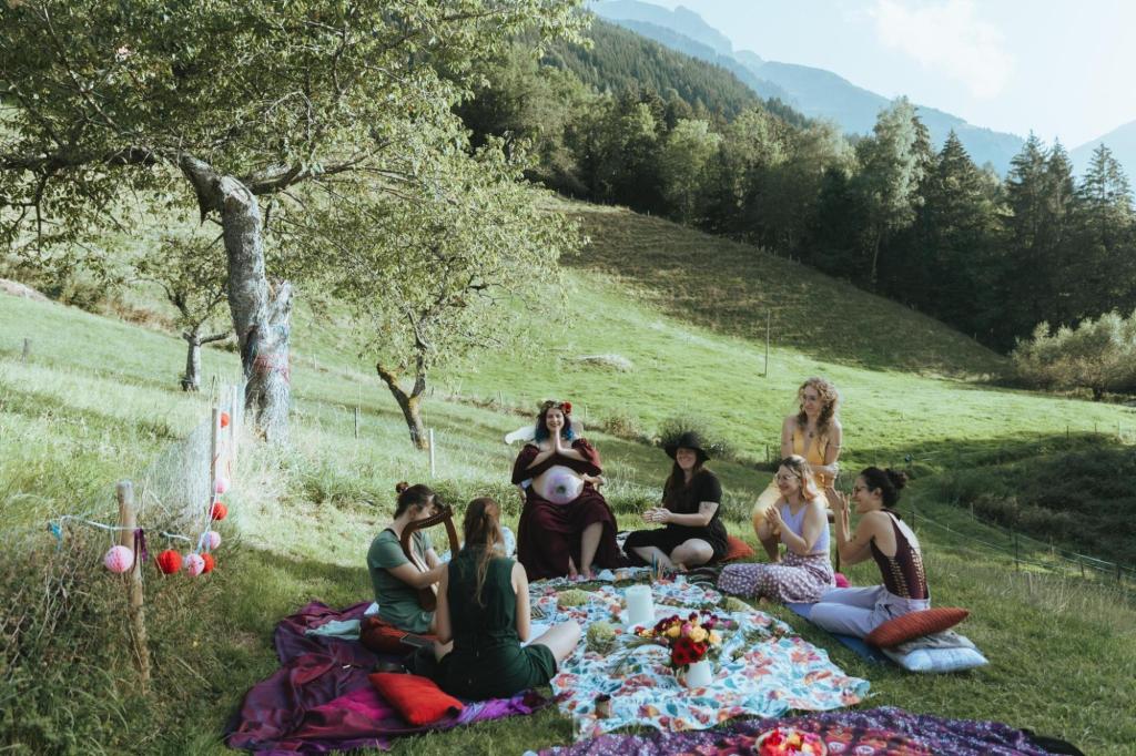 Célébrer la future Maman en présence de ses ami.e.s, dans différentes activités de reliance et pleines de sens : cercle de paroles, déclaration d’amitié, décoration d’une bougie qui sera allumée lors du début du travail, bellypainting (peinture sur le ventre), chants, danse, confection d’une couronne de fleurs, cérémonie de cacao, bain de pieds, massages…