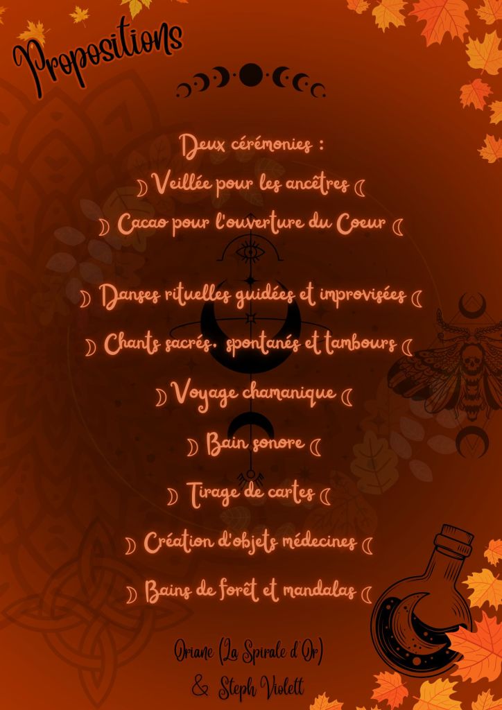 Nous sommes Oriane (La Spirale d’Or) et Steph Violett et nous vous invitons à une retraite entre femmes, à l’occasion du sabbat celte de la Samain ![]()