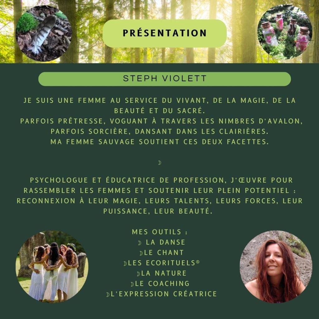 « Merci Steph ! C’était encore plus génial que tout ce que j’avais imaginé, et je l’attendais depuis longtemps cette retraite « Femmes Sauvages » ! Merci pour ta magie, pour la qualité des espaces créés, pour ton écoute, pour ton authenticité. Merci de nous créer des espaces de sécurité où on peut être libres. » D.
